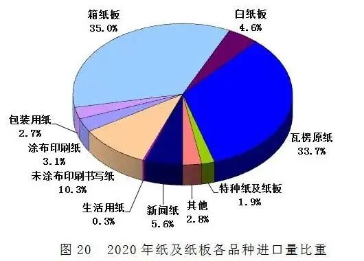 5、包裝用紙:2020年進口量大于出口量,凈進口量13萬噸。
